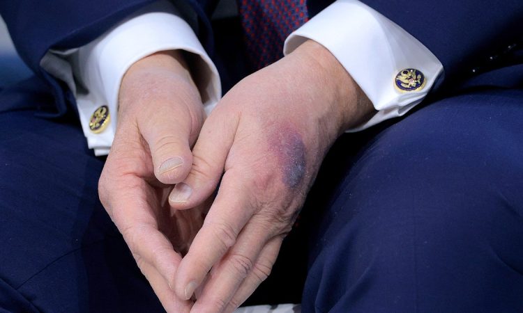 An unexpected detail during a high-stakes diplomatic event in Davos, Switzerland, captured the world’s attention on Thursday, shifting focus from geopolitics to a personal mark on the Commander-in-Chief. As President Donald Trump signed the framework for his newly launched Board of Peace at the World Economic Forum, a prominent bruise on the back of his left hand became a focal point for cameras and social media speculation. The vivid discoloration, visible in close-up photographs from the ceremony, quickly spawned a wave of online theories and questions about the President’s health, diverting conversation from the policy announcement to the personal physical state of the 79-year-old leader.